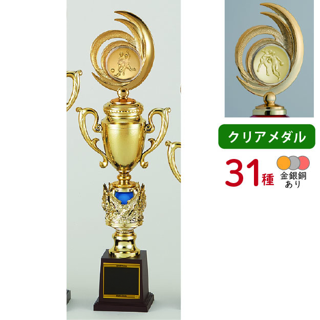 各種スポーツ大会など表彰式で使われる、上部にレリーフがついたトロフィーです。