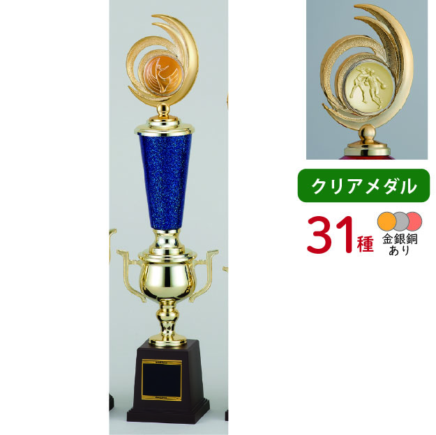 各種スポーツ大会など表彰式で使われる、上部にレリーフがついたトロフィーです。