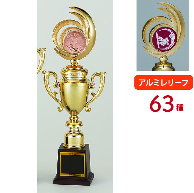 各種スポーツ大会など表彰式で使われる、上部にレリーフがついたトロフィーです。