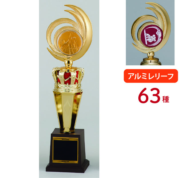 各種スポーツ大会など表彰式で使われる、上部にレリーフがついたトロフィーです。