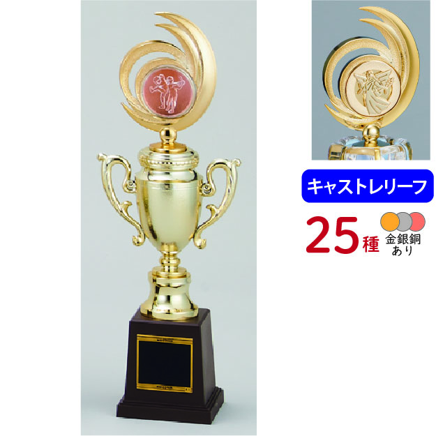 各種スポーツ大会など表彰式で使われる、上部にレリーフがついたトロフィーです。