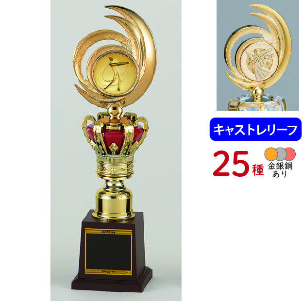 各種スポーツ大会など表彰式で使われる、上部にレリーフがついたトロフィーです。