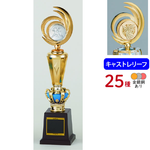 各種スポーツ大会など表彰式で使われる、上部にレリーフがついたトロフィーです。