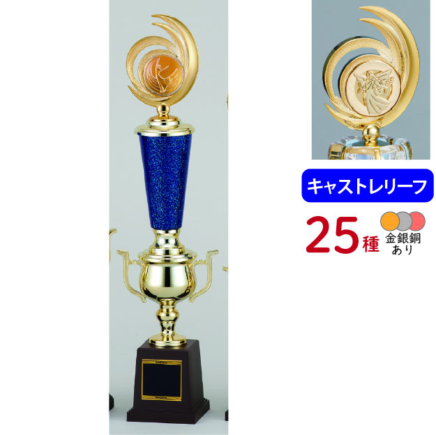 各種スポーツ大会など表彰式で使われる、上部にレリーフがついたトロフィーです。