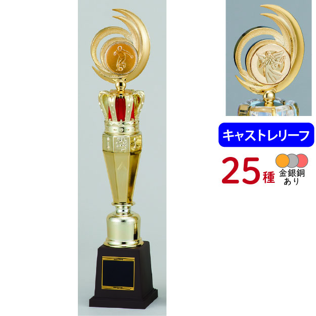 各種スポーツ大会など表彰式で使われる、上部にレリーフがついたトロフィーです。