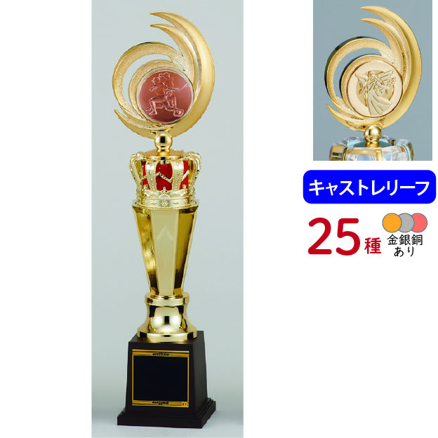 各種スポーツ大会など表彰式で使われる、上部にレリーフがついたトロフィーです。