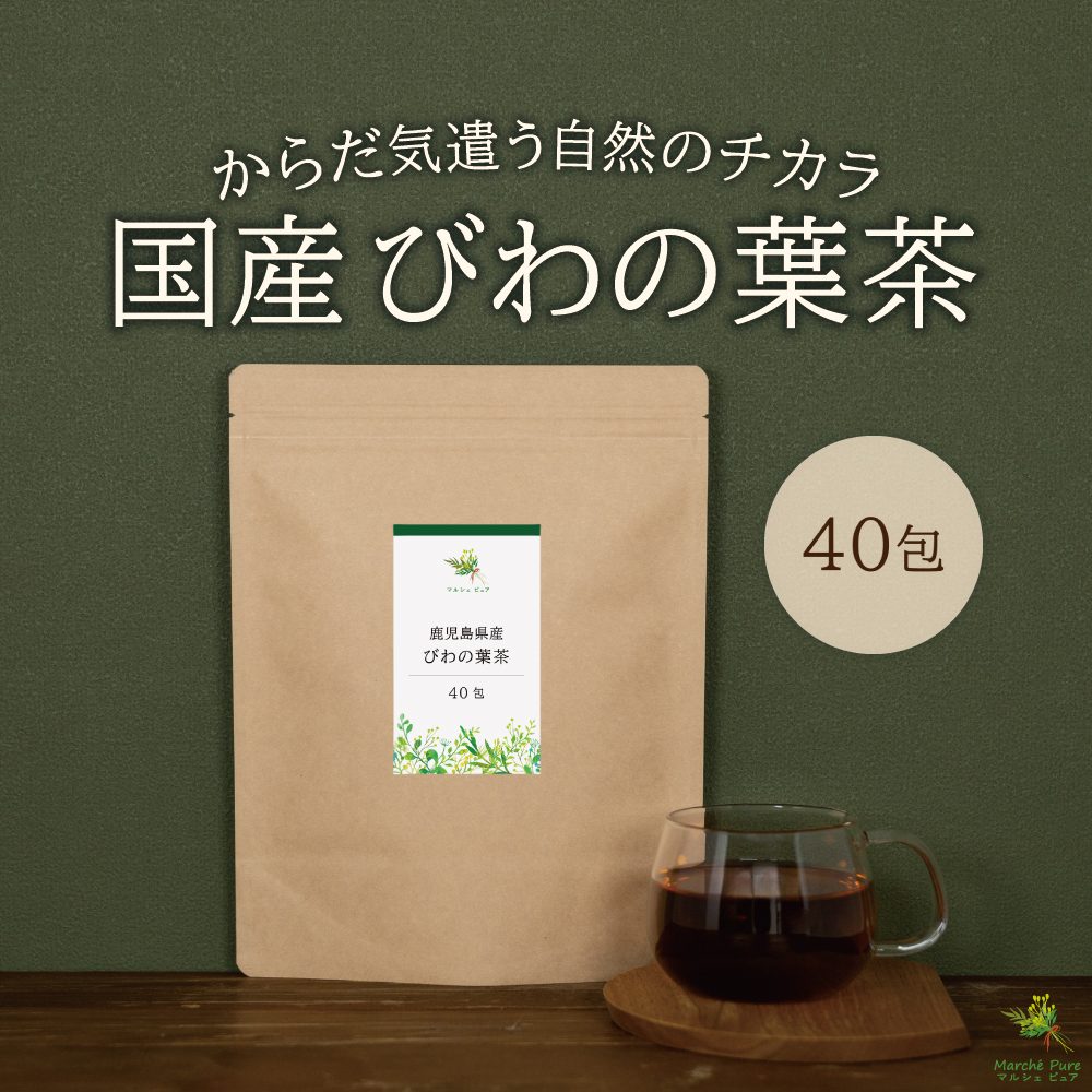 びわの葉茶は、古くから飲まれている健康茶で、インドの古い仏典の中に記されていたり、江戸時代には、ビワの葉と他6種の野草茶を煮出して氷で冷やしたものが販売されており、夏の風物詩として親しまれていたそうです。