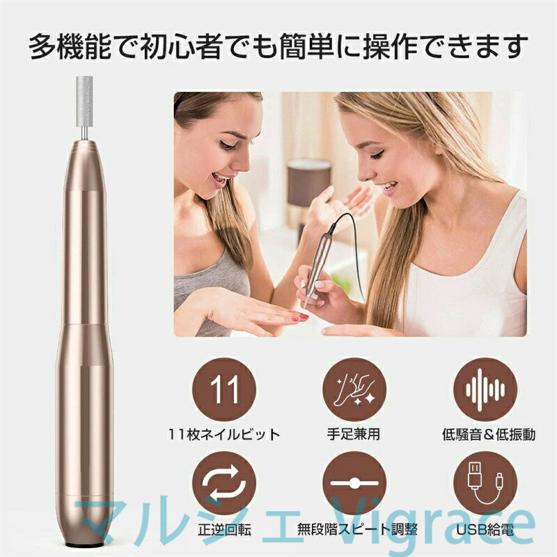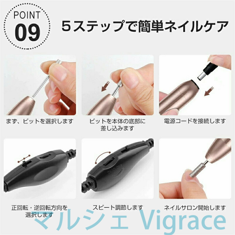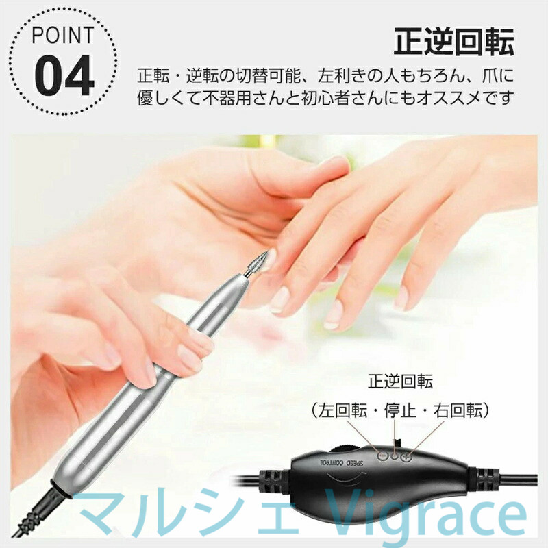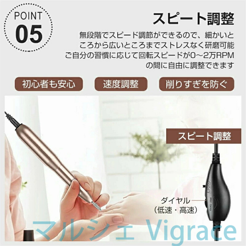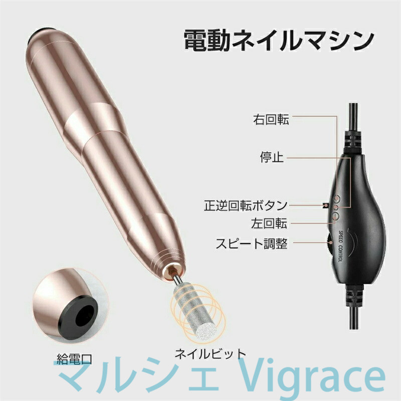 電動ネイルマシン ネイルケア 無段階変速 正逆回転 セルフネイル 手足兼用 低騒音 低振動 ネイル ビット 指先ケア 足 角質除去 研磨 爪磨き 甘皮処理 爪やすり