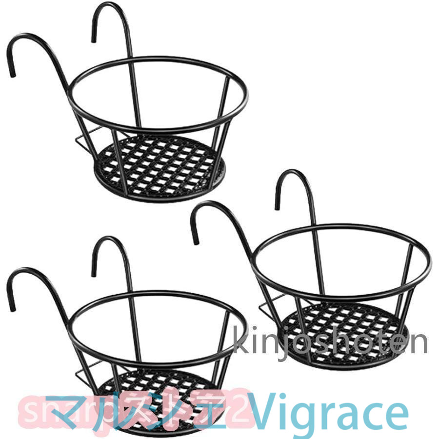プラントホルダー 3個セット 吊り下げ 植木鉢 ベランダ バルコニー 家庭菜園 観葉植物 フラワースタンド( 黒色)