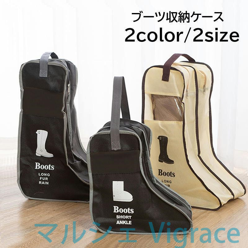 ブーツ収納ケース ブーツバッグ ブーツカバー シューズボックス ロングブーツ用 ショートブーツ用 収納袋 靴収納 携帯 手提げ シンプル 立体 ほこり