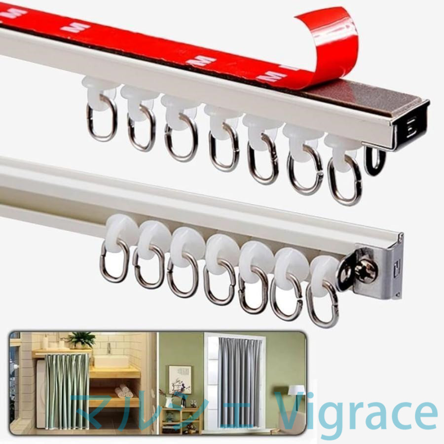 カーテンレール穴開け不要アルミカーテン天井トラック自己接着剤50~140cm天井付け正面付け兼用ネジくぎ不要主婦が愛用花粉梅雨対策取付簡単