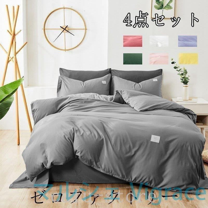 布団セットシングル4点北欧ほこりが出にくい洗えるふとんセットおしゃれ無地柄カバー付きホテルタイプ洗える来客用来客用布団