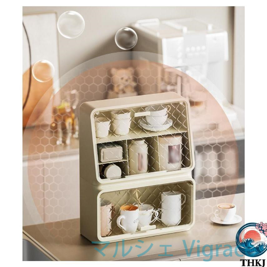 卓上食器棚 2段 ミニ食器棚 調味料棚 カウンター上収納 ミニカップボックス 収納棚