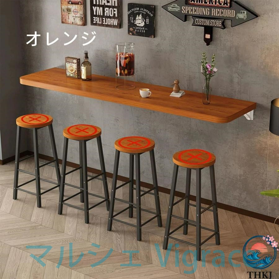 壁掛け折り畳み カウンターテーブル ハイテーブル 無垢材素材太いスチールフレーム組み立て簡単 省スペ 家庭用、カフェ、バーに適しています 強力な耐荷重性(椅