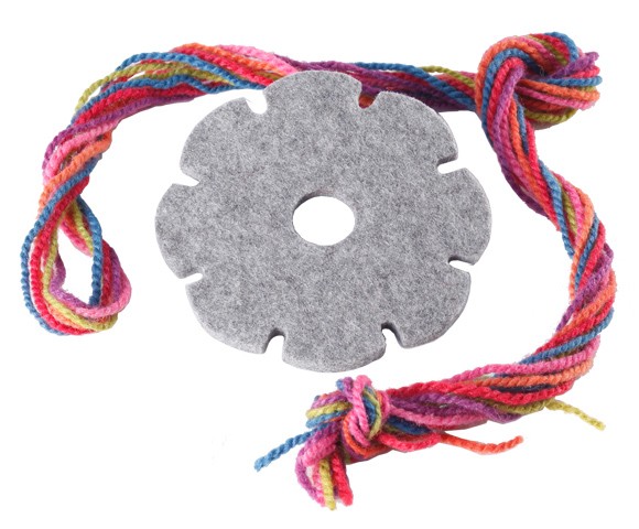 7本の糸を編んで1本の紐を編み上げるドイツ版の組ひも作りです。空いている切り込みに糸を順番に移動させるだけで編めるので、リリアンより簡単な手仕事と云えます。補充用の毛糸は、草木染め段染毛糸などをお使い下さい。良質な自然素材が、手の感覚を優しくリードしてくれます。