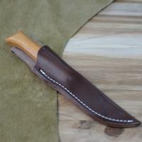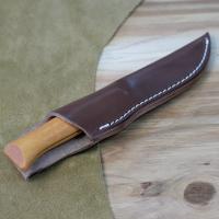 オイルドレザー 国産のオイルドレザーを使用しております。 厚さは約3ミリです。オイルを多めに含んだ革ですので肉厚ですがしなやかな手触りです。オピネルナイフを安全にお使い頂けるのに適した素材です。 |