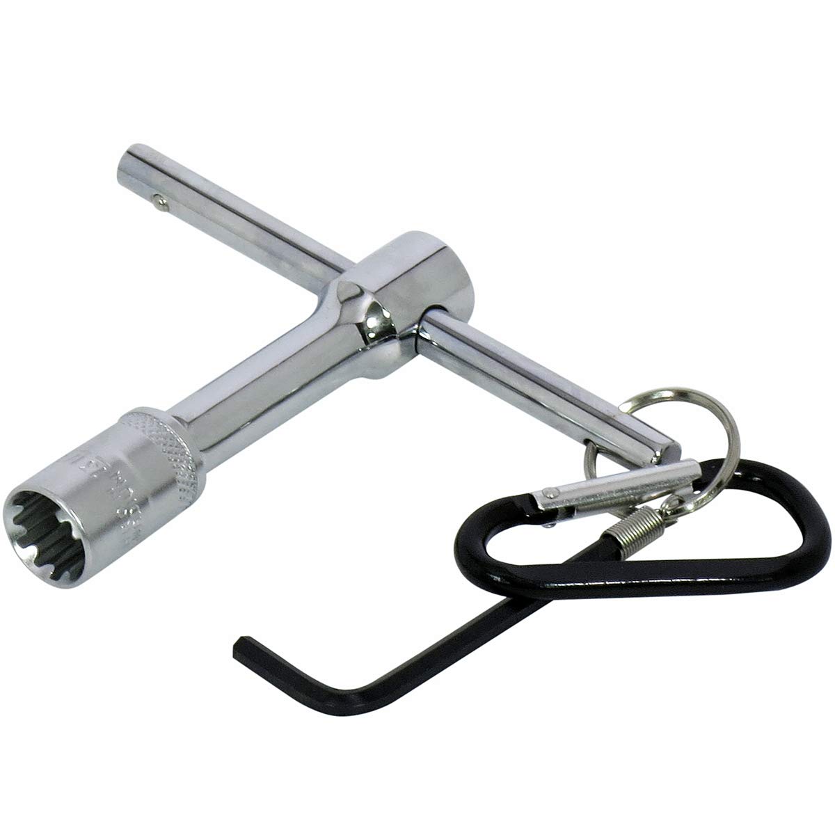 刈払機(草刈り機)の刈払刃の取り付けネジの締めゆるめ等に。 携帯に便利なカラビナ付き。