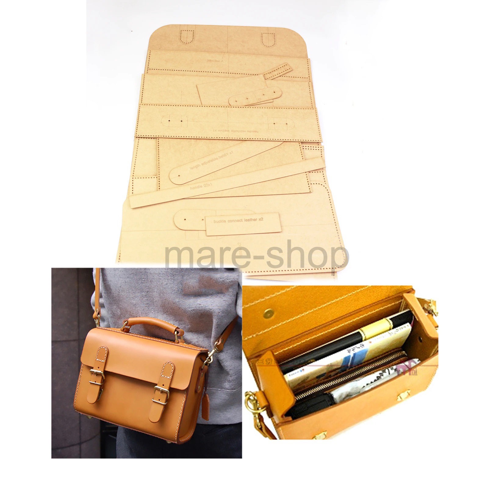 特徴:レザークラフト作成キット レザークラフト 型紙 ショルダーバッグ 肩がけ バッグ 鞄 メンズ メンズショルダー ブリーフケース 道具 製作キット ハンドメイド クラフト 製作 テンプレート