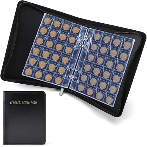 人工皮革:コインクリップアルバムはPU製人工皮革で、各透明カバーポケットのサイズは約3x3cm、480枚収納可能、古銭やコインなどを大量に収集しているコレクターにぴったりのコレクションホルダーです