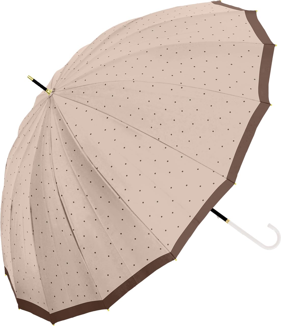 商品名:中谷 Natural Basic 婦人長傘 16本骨 ドットバイカラー ラテ 【734-030】 手開き 親骨サイズ:55cm 耐風仕様