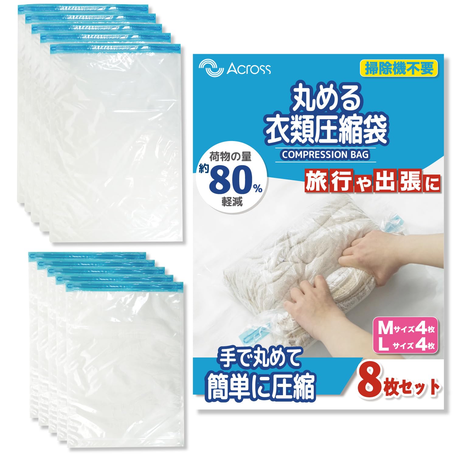Across 手巻き 圧縮袋 衣類 ポンプ不要 収納袋 旅行 防カビ ダニ対策 再利用可能 (Bタイプ/M-4枚,L-4枚)