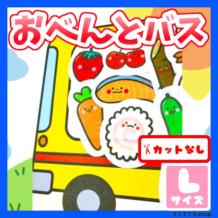 「おべんとバス」パネルシアター Lサイズ 保育士、子育てママ・パパ向け 【梱包内容】 ●絵パネル(A3サイズ4枚・写真の通り) サイズ:Lサイズ(大きめのパネルボード向け)●シナリオ【作品詳細】おべんとバスの歌に合わせて演じるパネルシアターです。 ●【素材】Pペーパー#130(MBSテック又はMBSテックA) ●【注意事項】ご自身でハサミでカットしてください。改良の為、予告なくデザインを変更する場合がございますがご了承ください。