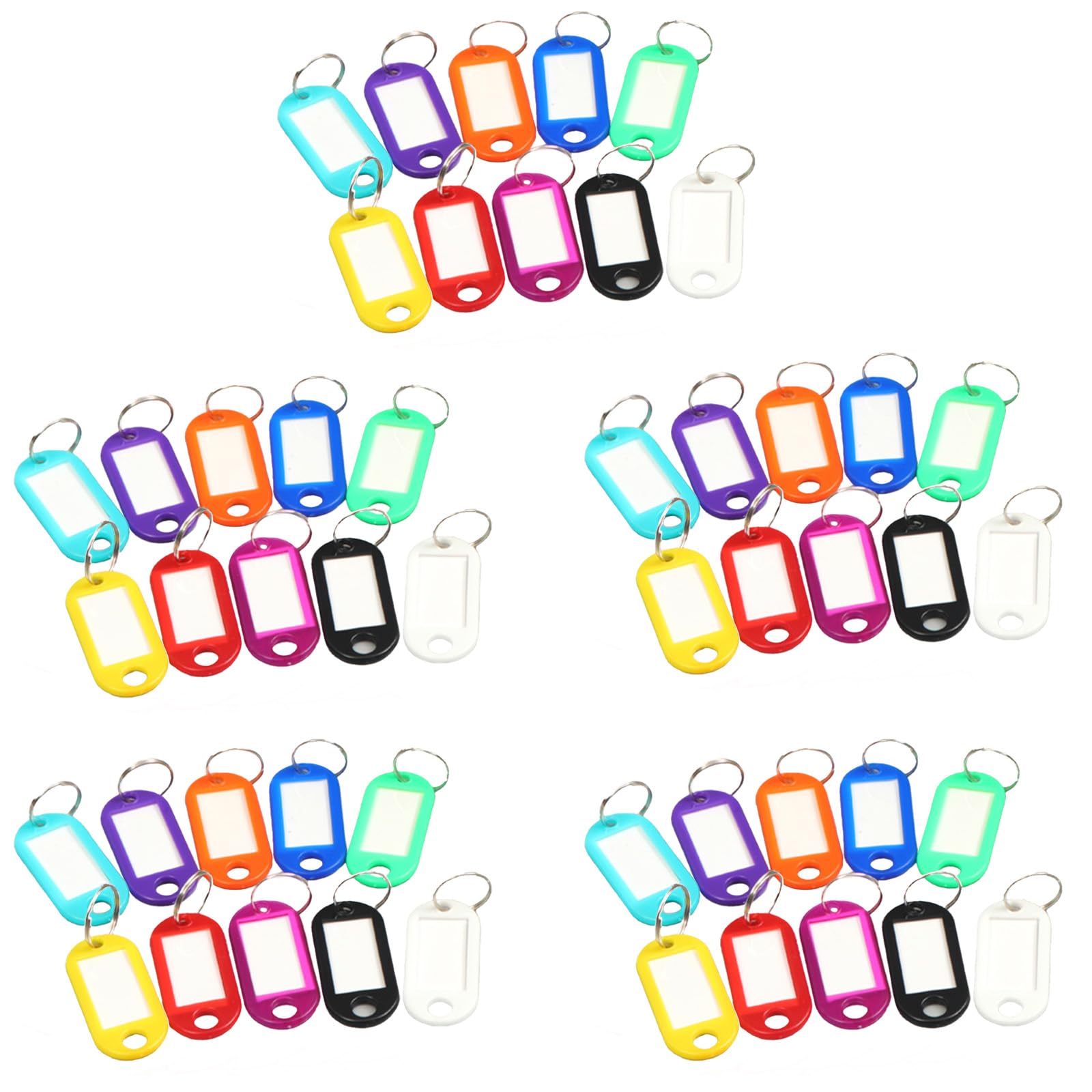 FsGrg キーチェーンタグ キーチェーンネームプレート プラスチックラベル バルク 大容量 10色 家庭用ラベル コマーシャル 軽量 ポータブル