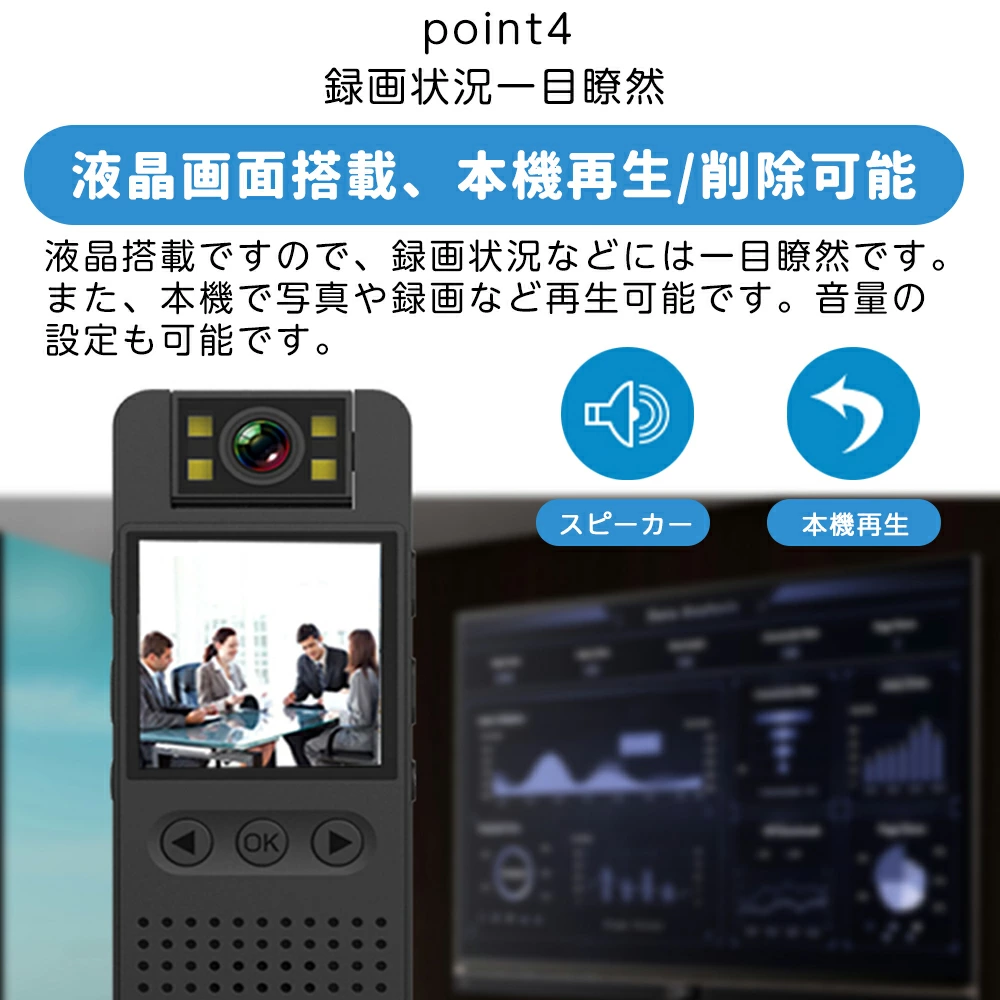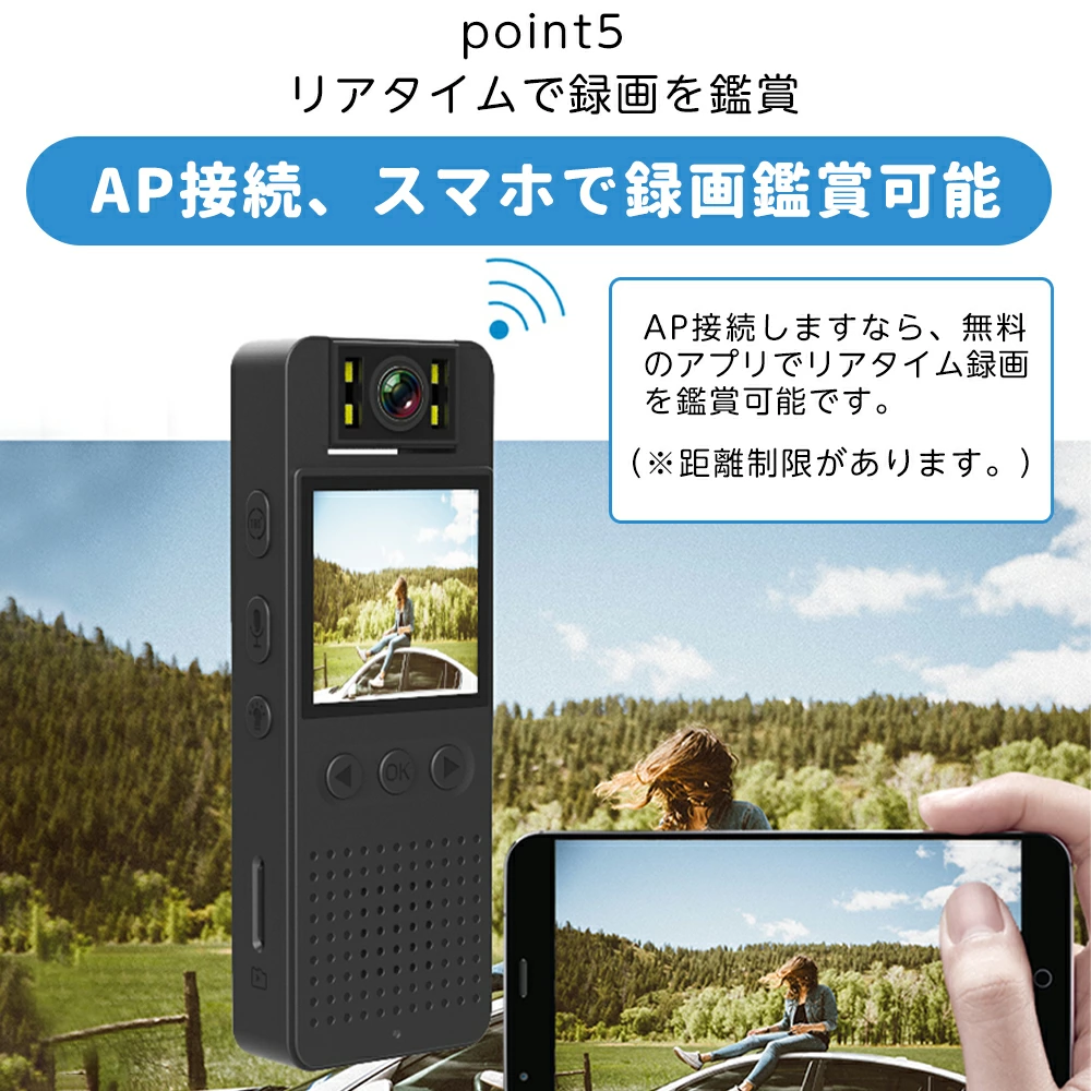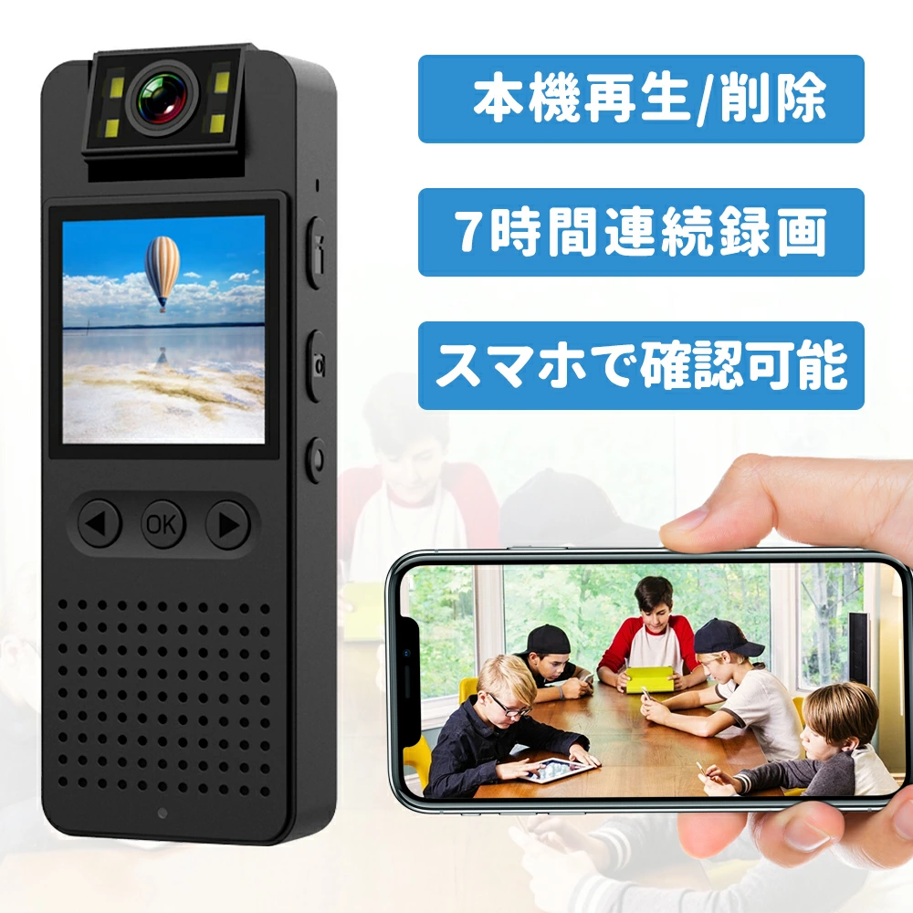 小型カメラ 液晶付き 長時間録画 スマホ 高画質 遠隔操作 バッテリー内蔵 クリップ iPhone android アクションカメラ ビデオカメラ 防犯カメラ