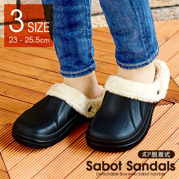 <商品名>ボア脱着式サボサンダル ブラック