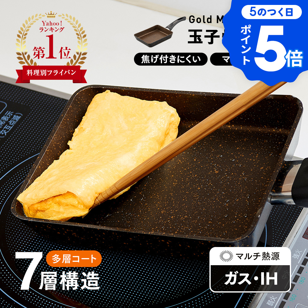 底厚約5.2mmで熱が均一に伝わり、調理しやすい玉子焼きフライパン。ふっ素コートで焦げ付きにくくお手入れ簡単!焦げ付いても水を入れるとスルリと落ちやすい。内面4層、外面3層のキズつきにくい多層コートだから、摩耗に強い。