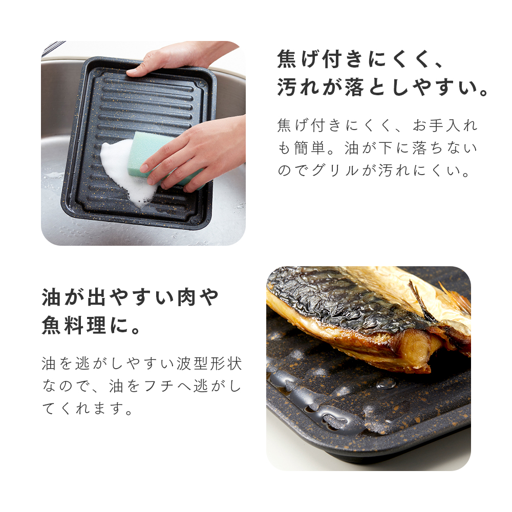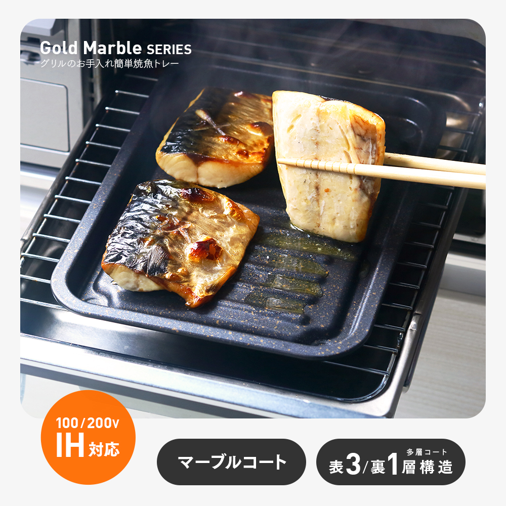 検索ワード:焼き魚 グリル トレー マーブルコート マーブルコーティング IH対応 マーブル加工 調理用品 調理器具 キッチン 台所 料理 油 脂 201911