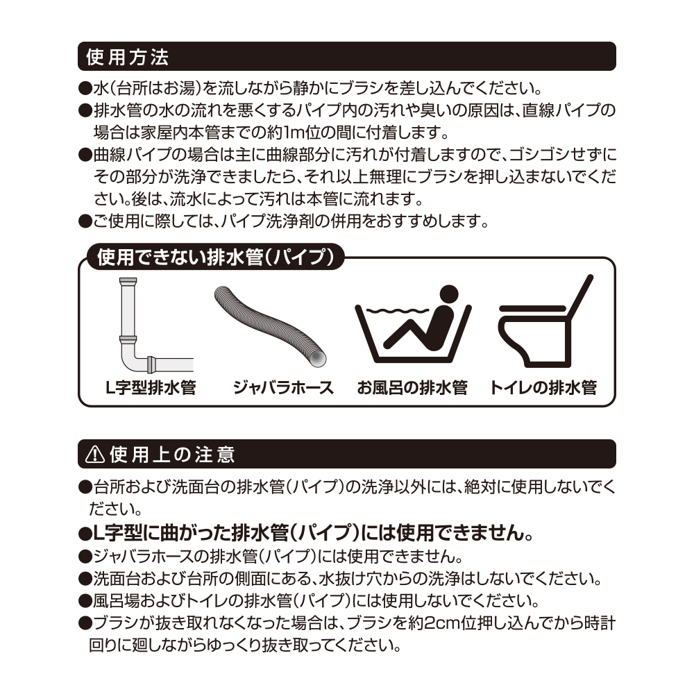 検索ワード:排水管 掃除 ブラシ パイプ 曲がる カーブ 汚れ 詰まり