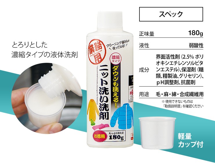 洗濯洗剤 おしゃれ着 洗剤 洗い 液体 180g 徳用 ドライマーク ダウン ニット コート カシミヤ 業務用 ドライクリーニング
