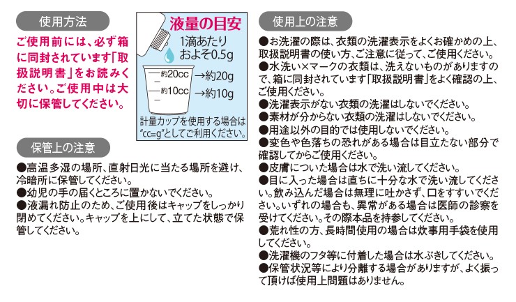 ■使用の目安:水1Lに洗剤2g(約4滴)(手洗いする場合)