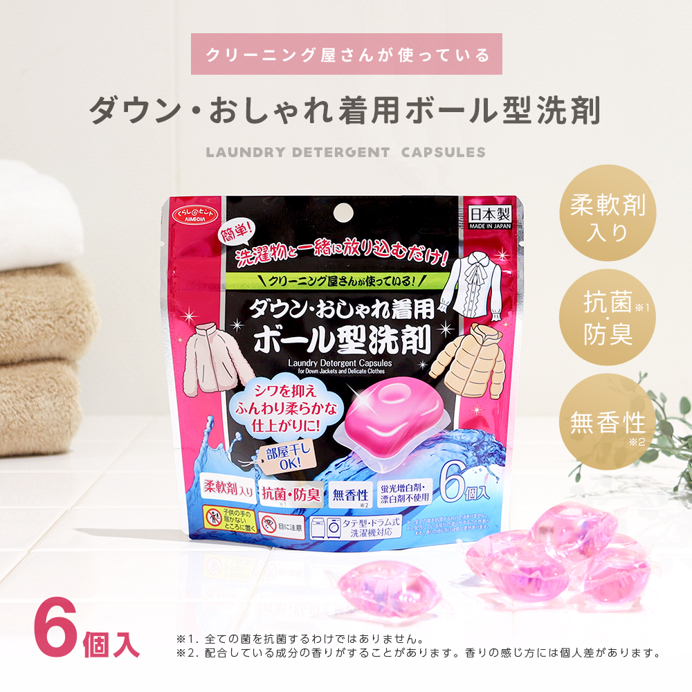 液体洗剤 ボール型 おしゃれ着洗剤 6個入 業務用 柔軟剤入り 日本製 無香料 抗菌 防臭 クリーニング ドライクリーニング 部屋干し アイメディア