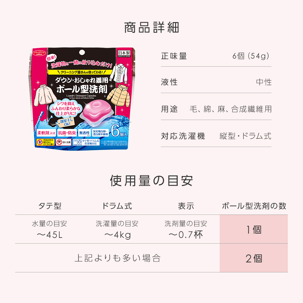 <商品名>クリーニング屋さんのダウン・おしゃれ着用ボール型洗剤 6個入
