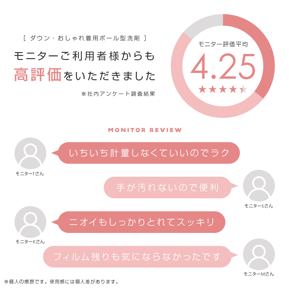 柔軟剤入、抗菌・防臭(※1)、無香性(※2)、蛍光増白剤・漂白剤不使用