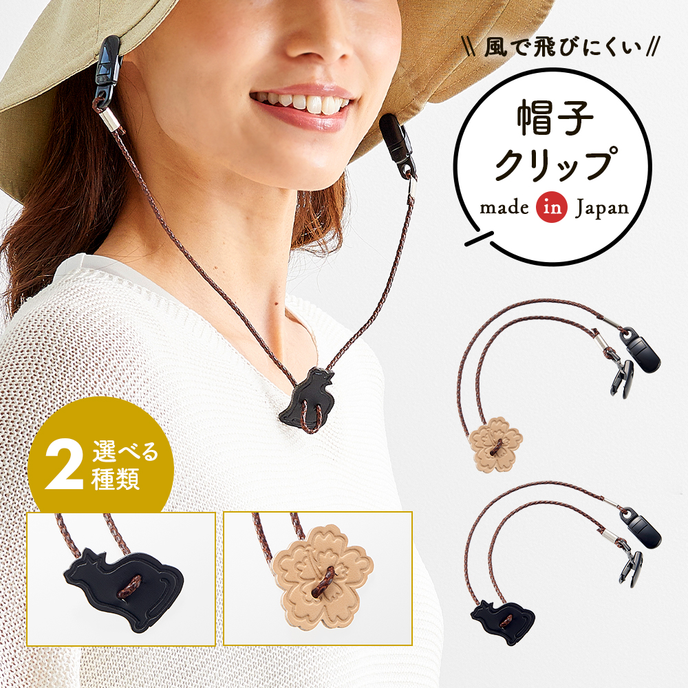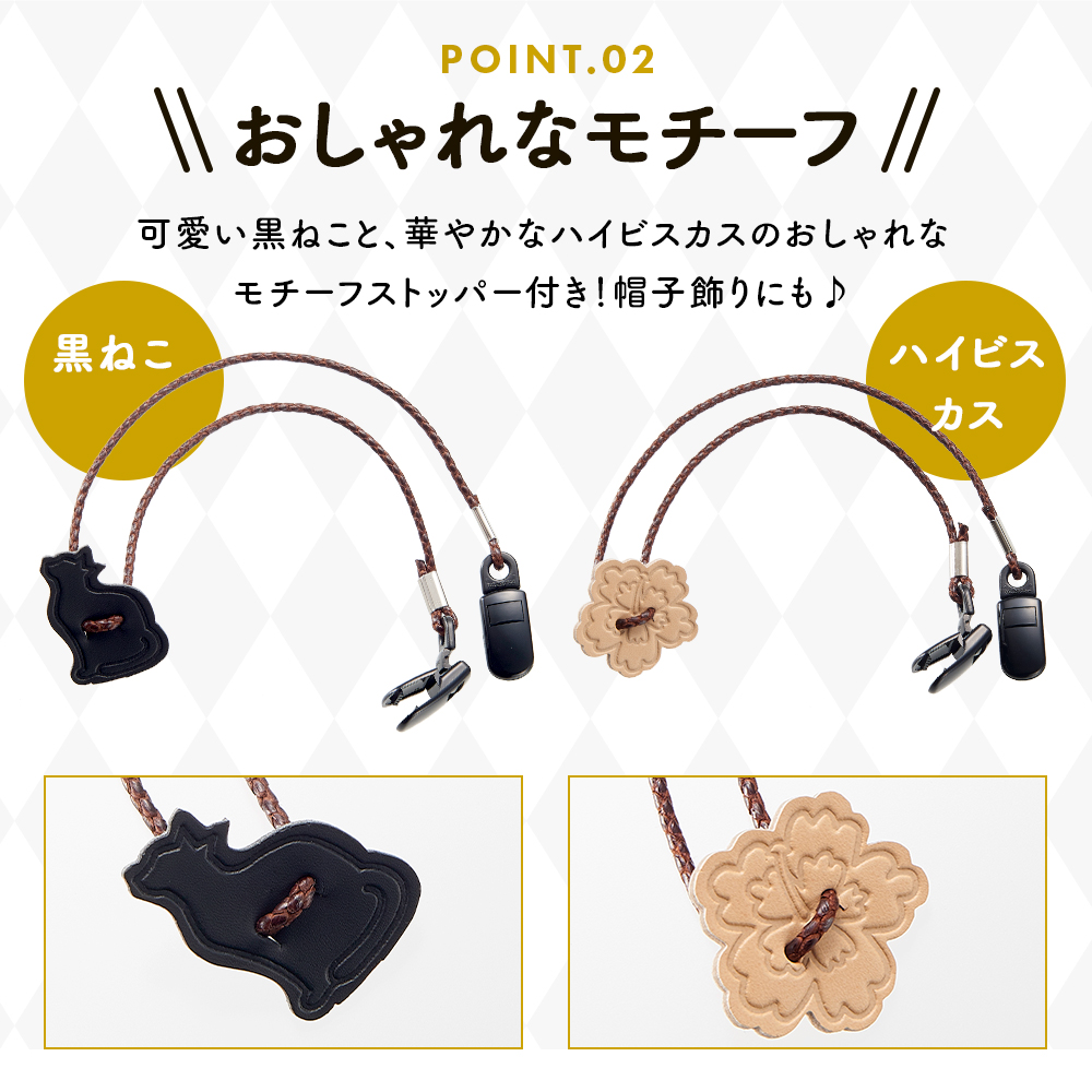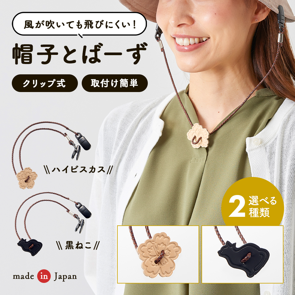 帽子クリップ 帽子ストッパー ハットクリップ 後付けあご紐 ストラップ 帽子とばーず 風飛び防止 キャップ かわいいモチーフ 猫 黒ネコ ハイビスカス 帽子小物