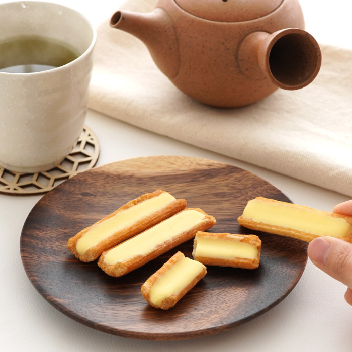 こだわりの国産餅を使用してつくった舟形のあられに数種類のチーズがブレンドされたオリジナルチーズを流したこんだ「チーズスティック」はチーズあられの元祖です。