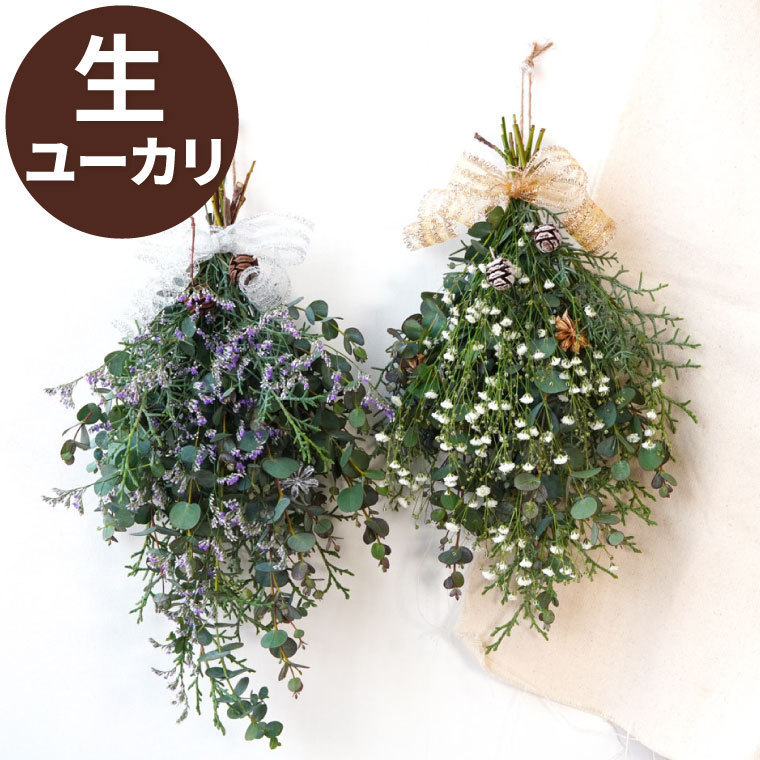 直送OK 結婚式 クリスマス ユーカリのプチスワッグ 25cm 生花 プレゼント ギフト 北欧雑貨 おしゃれ 花束 玄関飾り 結婚祝い 記念日 電報 祝電