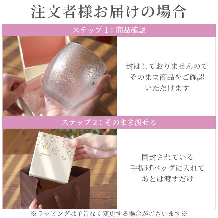 | 【 名入れ うたかたロックグラス 単品 】 ■桜きらめくグラスに金の刻印 光の具合によって、グラス表面がキラキラ輝く特殊加工が美しい グラスの「きらめき」による効果でお酒の美味しさや冷たさをより一層演出します 上品な桜舞うデザインにゴールドのお名前彫刻で特別感アップ 強度のあるガラス製、気軽に日常使い出来るところも◎ ■急ぎのお祝いに 急ぎのお祝いにも安心◎ 届いてそのまま渡せるギフトボックスで大切にお届けします お母さん、友達、友人、彼女、奥様、お嫁さん、上司、部下、同僚へ 誕生日、記念日、送別、餞別、感謝の贈り物として♪ 還暦、古希、喜寿、傘寿、米寿、など長寿のお祝いにも! 名入れプレゼントで世界に一つの贈り物! | |