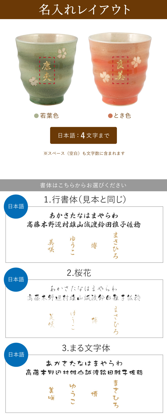 | 彫刻内容 | ●日本語のみ4文字まで |