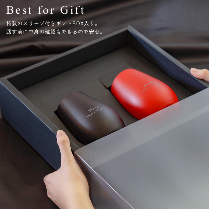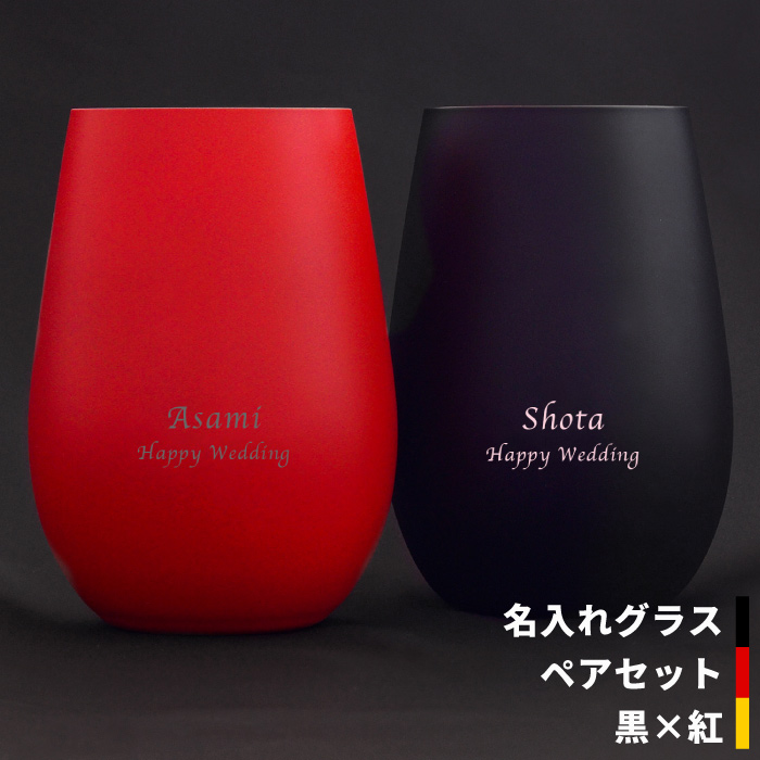 | 【 メタリックカラーグラス 460ml ブラック レッド ペアセット 】 名前の入れられる丸みの帯びたドイツ製ペアグラス。 専用のボックスに収め、ギフトカードを添えた結婚などの記念に贈りたいプレミアムギフトセット。 グラスとしての実用性もしっかり兼ね備えています。 ■バイカラーグラスペア 内側と外側の赤と黒がそれぞれ逆となった対のバイカラペア。 丸みを帯びたフォルムが香りを逃さずウイスキーなど常温で楽しめるお酒にぴったりです。 ■ドイツ製クリスタルガラス 東ドイツにあるシュトルツル・ラウジッツ社のグラスは、 伝統に培われたクラフトマンシップと最先端技術の融合によりクオリティの高いクリスタルグラスを創り出しています。 ■オーガニックカラー 鮮やかな発色でありながらオーガニック塗料(有機塗料)を使用しており、 人にも環境にも優しいエコロジーグラス。 ■レッドフリーグラス 環境に有害とされる鉛を使わないレッドフリーガラス(無鉛クリスタルガラス)を使用。 傷が付きにくい丈夫な素材です。 還暦、結婚祝い、結婚記念日、永年勤続、社内表彰などのお祝いに♪ 名入れをしても翌営業日発送のスピード対応! 名前を入れて世界にひとつのプレゼント! | |