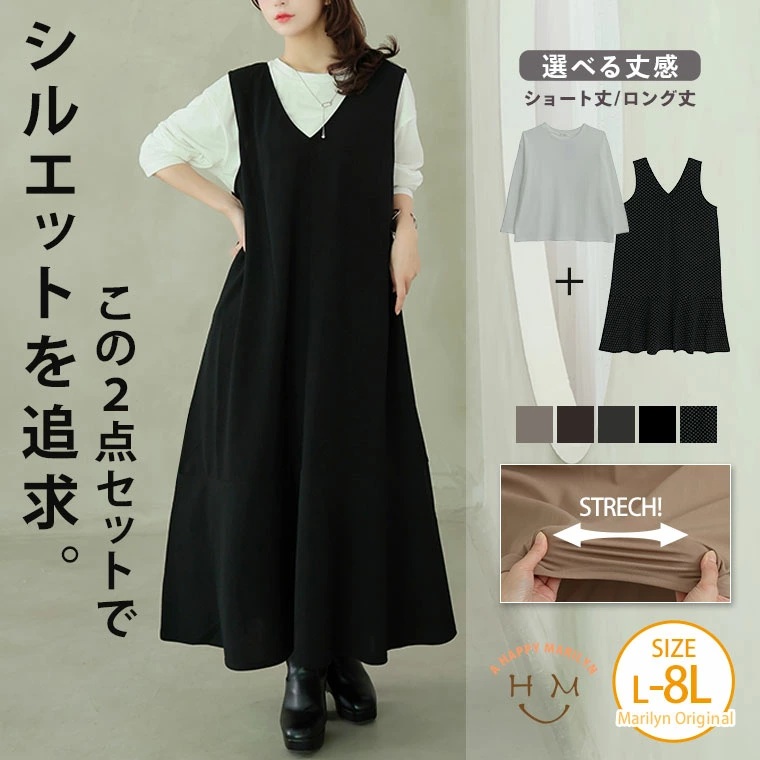 コーデに迷うシーズンに大活躍セットアップ!2点セット2丈展開ジャンパースカート