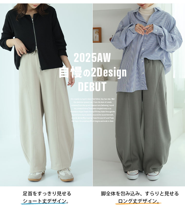ショートで抜け感、ロングで脚長見え。嬉しい2丈展開ハピぽかカーブパンツ