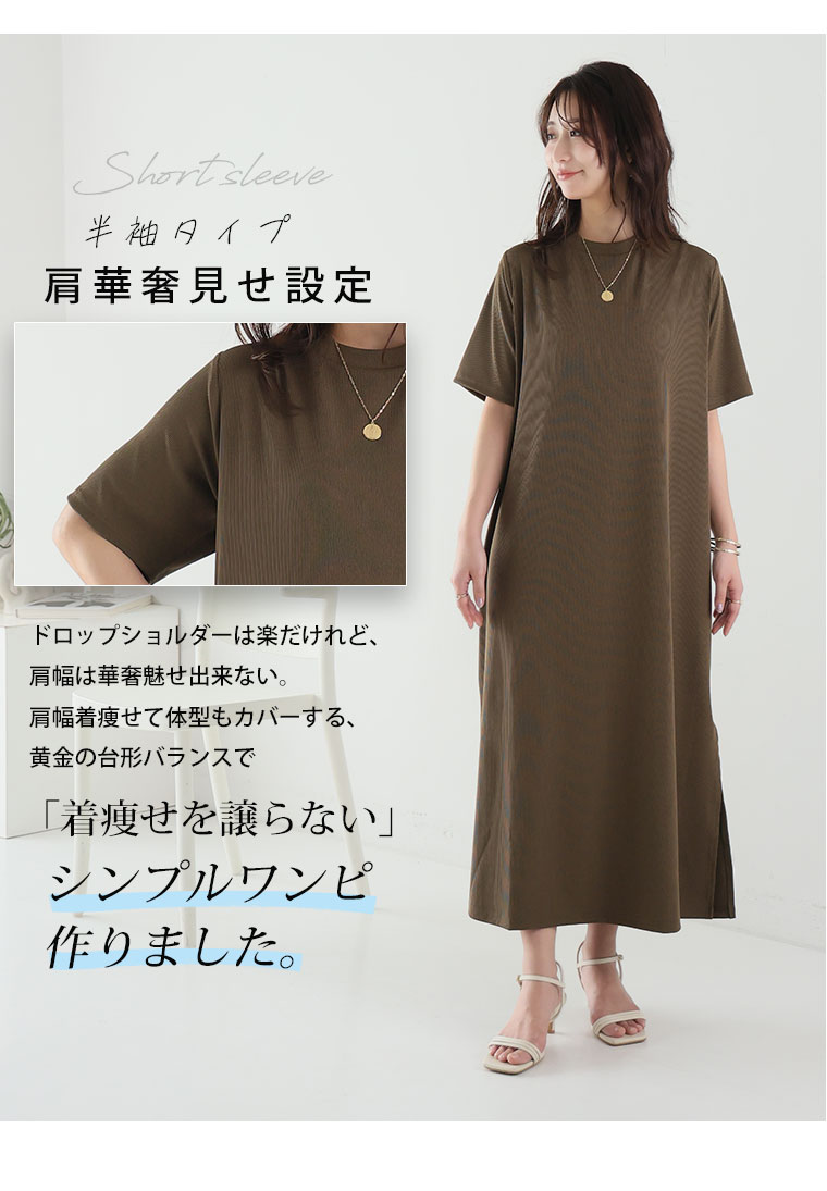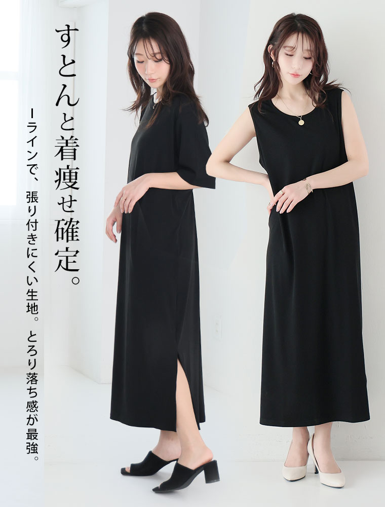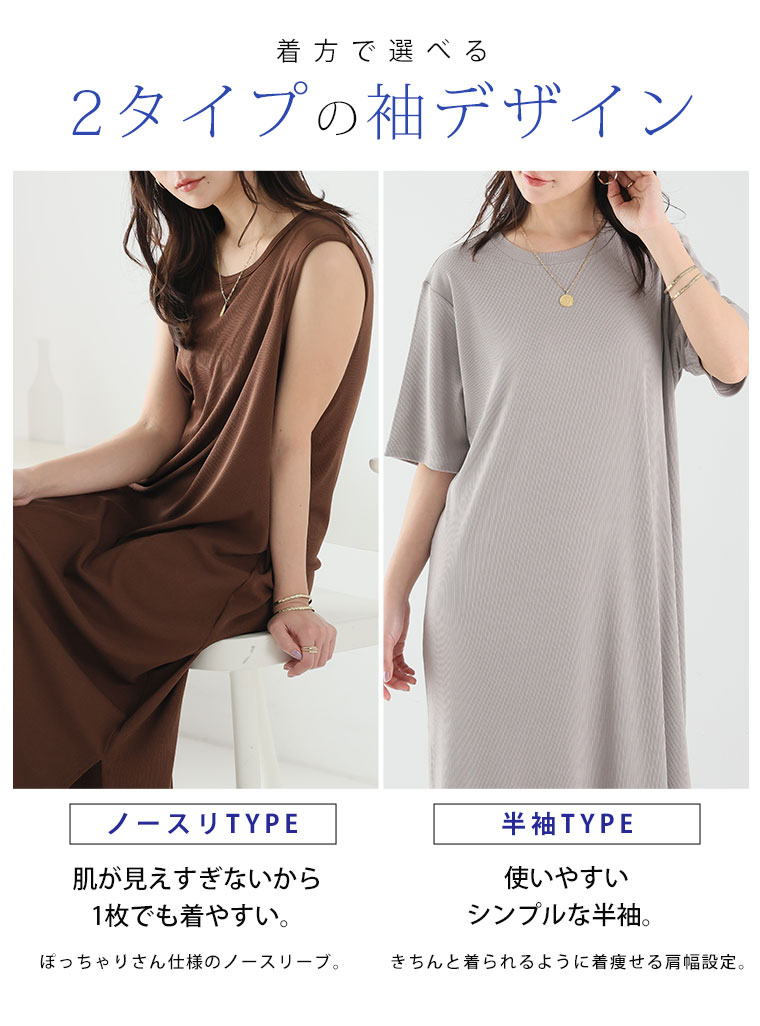2袖から選べる着痩せて着やすいサラッとろワンピース