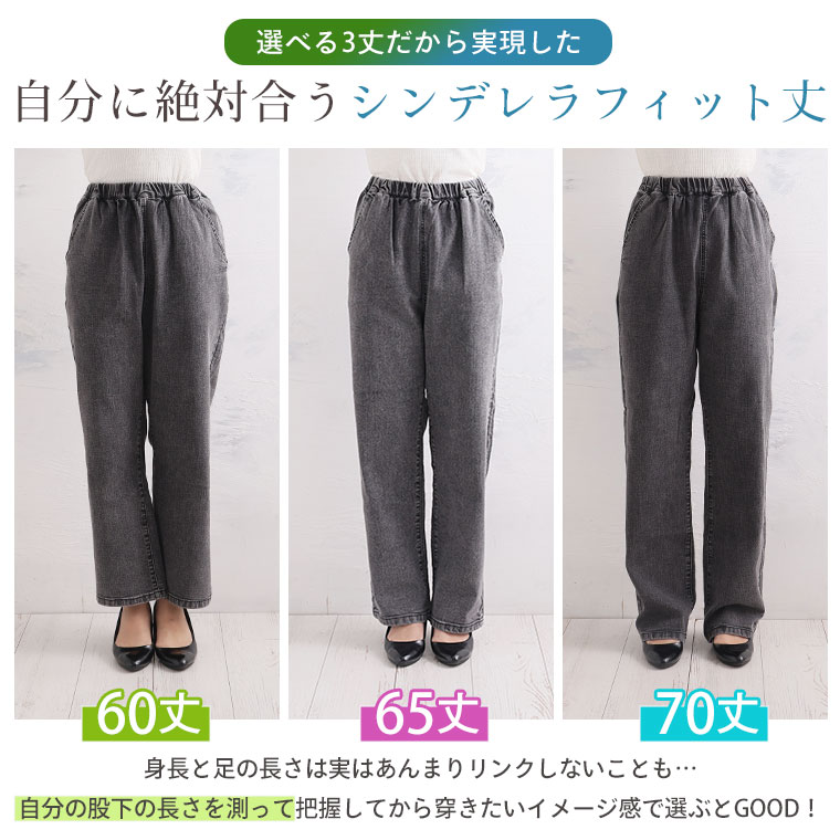 「極み」ストレッチですとんとすっきりデニムワイドパンツ