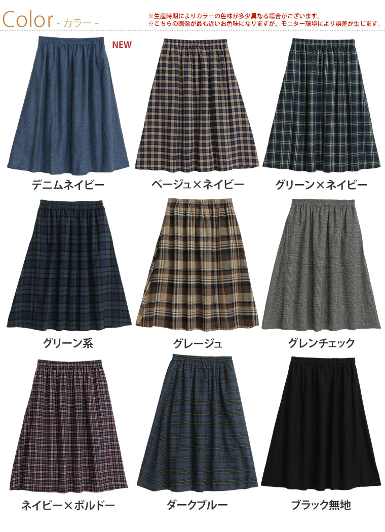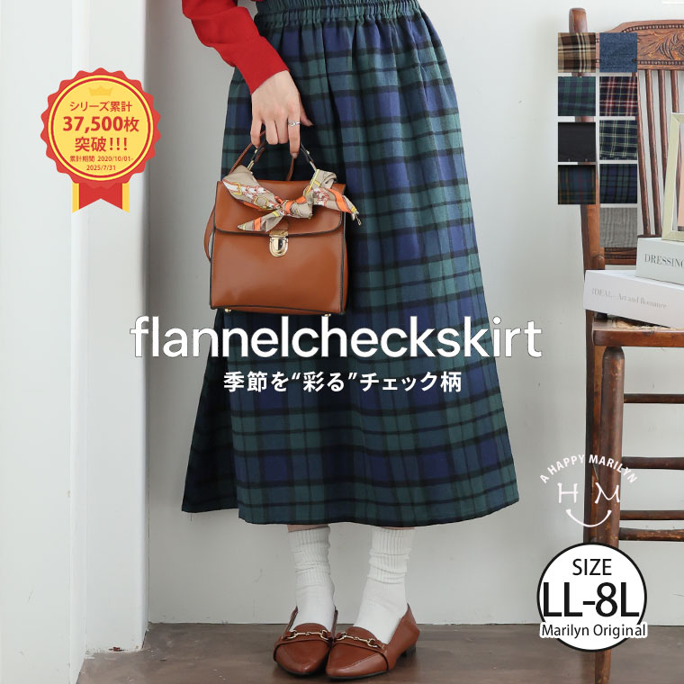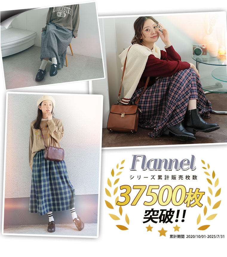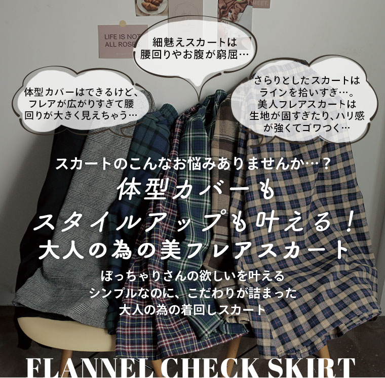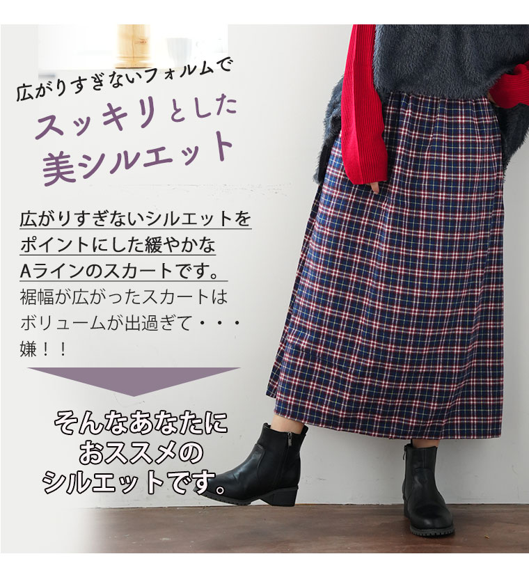大人が着られる程よいロング丈のフランネルAラインスカート