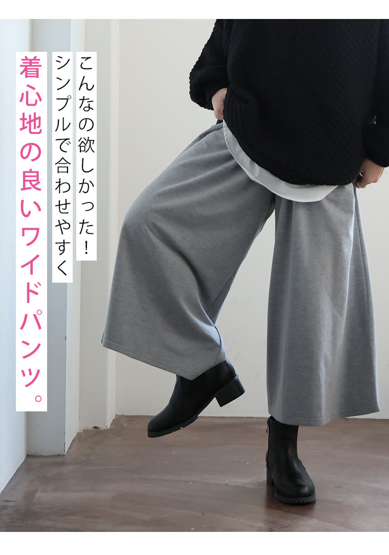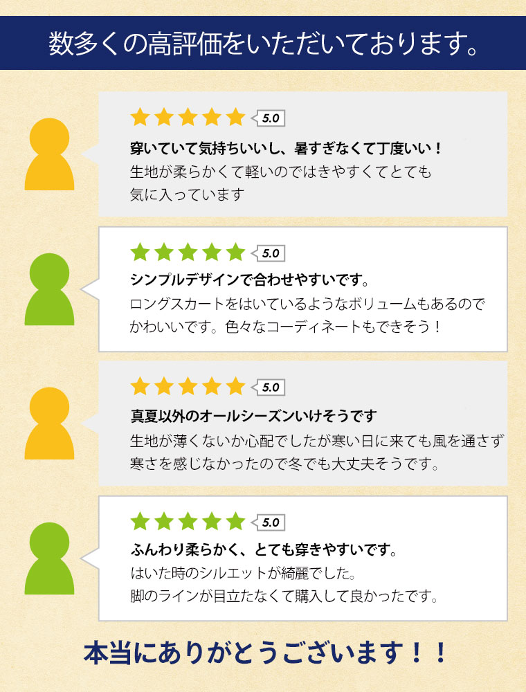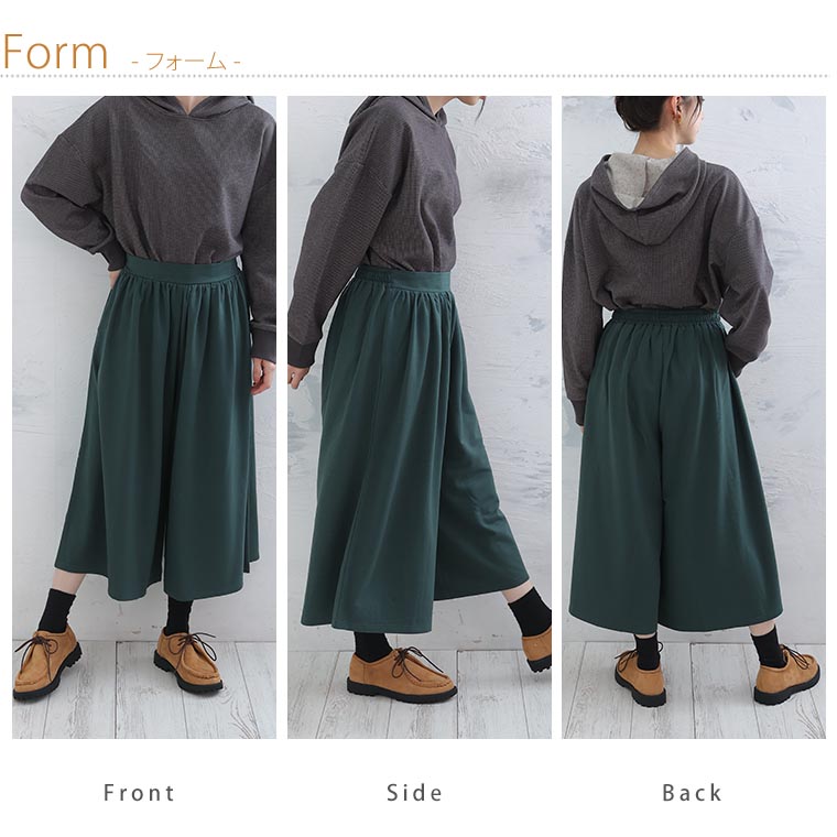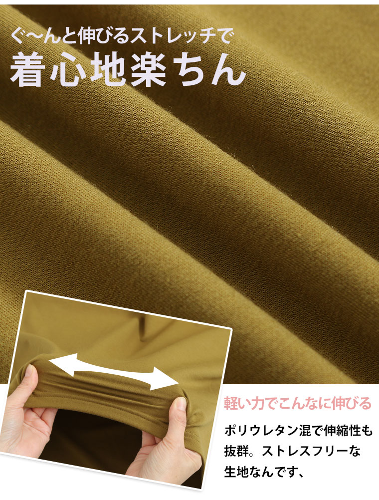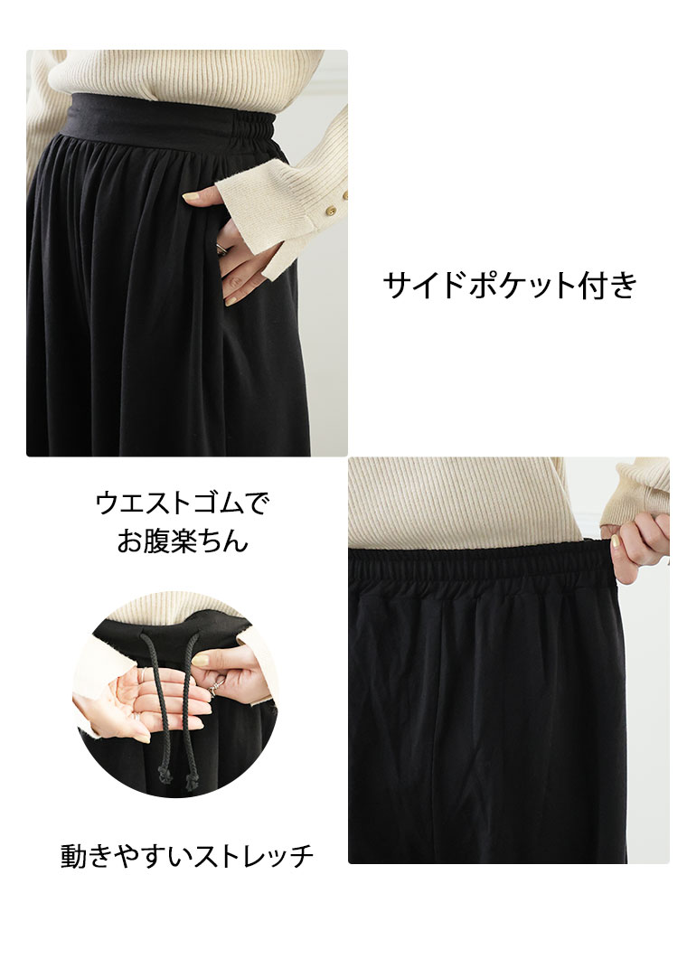■着用感:ちょうどいい、■着丈:足首、■バスト:-、■腕回り:-、■袖口:-、■袖丈:-、■首回り:-、■ウエスト:ちょうどいい、■ヒップ:ちょうどいい、■太もも:ややゆったり ●厚すぎない生地感が軽くて穿きやすいです。低身長の私でも引きずる事なく着られました。