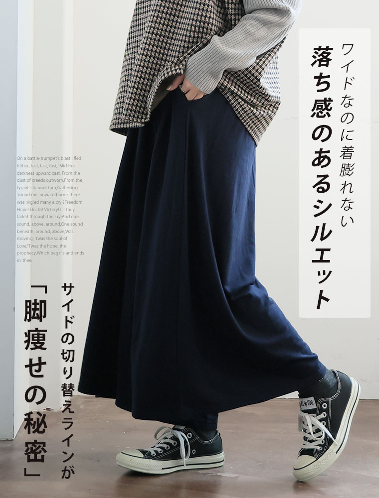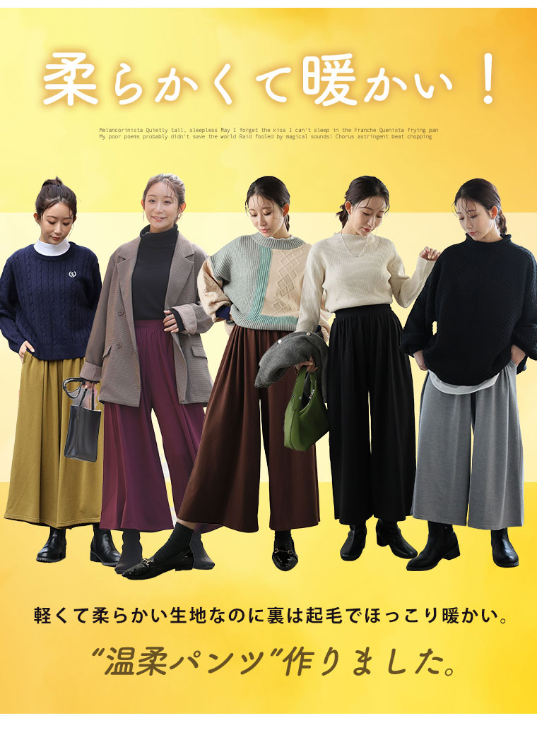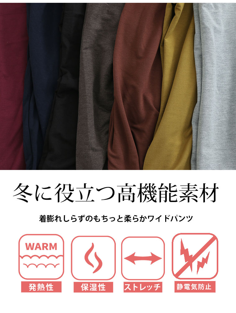 7つの機能付 身長別に選べる2丈。暖かいのに 着ぶくれないワイドパンツ